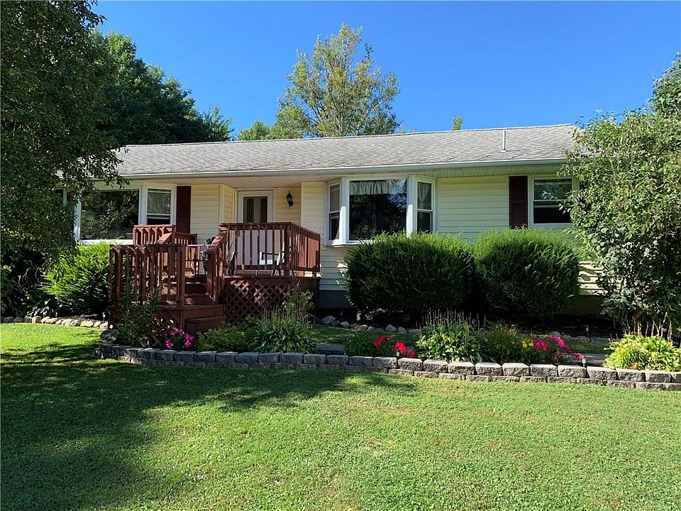 Fort LeBoeuf School district with a Cambridge Springs address! Modern ranch home featuring a detached 2 car garage, detached 1.5 car garage and large storage shed all situated on a beautifully landscaped 6 acres! Property also features a wrap around porch, asphalt driveway, and several nature trails on a picturesque lot!