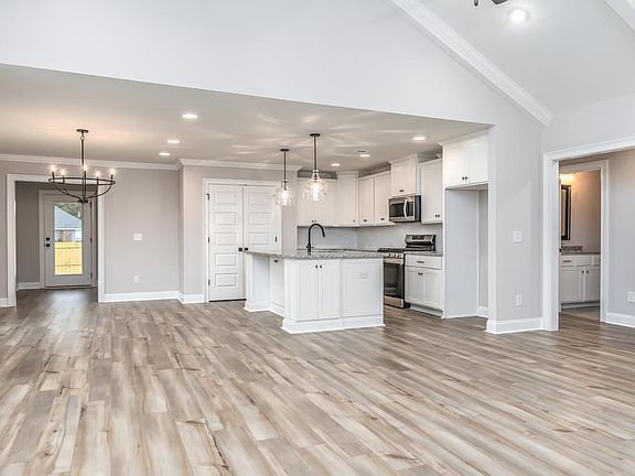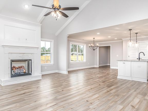The "Overton" is a 1 ½ story open floorplan with ample possibilities. This four bedroom, two and a half bath plan with bonus room begins with a refined foyer entry way that opens into a roomy living area with a vaulted ceiling. Next experience the open kitchen with large center island and adjoining dining room. The kitchen offers built in appliances, granite countertops and an expanded pantry. The master quarters provides a large bedroom and walk in closet as well as a luxurious bathroom complete with a double granite vanity, garden/soaking tub, and tiled shower with glass door. The bonus room located upstairs includes a half bath and has plenty of possibilities as an entertainment area or extra bedroom. This layout truly is a must see!