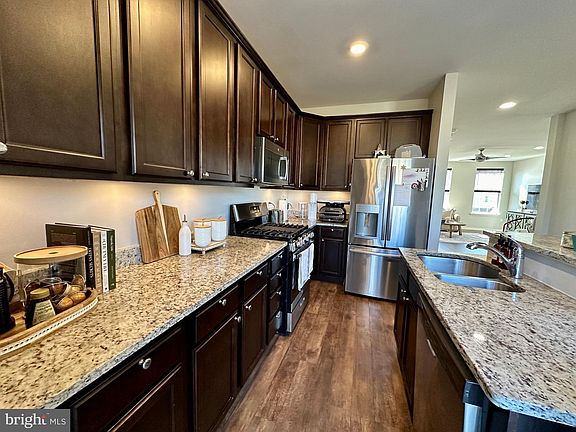 This outstanding Luxury Interior Townhome is located in the prestigious community of Estates at Crossroads in Florence, NJ. Walking up to the home, there is a large driveway, a ground-level two car garage, and an inviting entryway against the classic red brick face. Upon entering this 3 bed 2 full 2 half bath newly painted townhouse, the main living floor includes an open concept with high ceilings, recessed lighting, Gourmet Kitchen with 42" Espresso Cabinets with lighting underneath, Granite counters and SS Appliances including a new range. The dedicated dining area right off of the kitchen is perfect for family gatherings Recessed Lighting and custom blinds throughout.. Upstairs there are 3 spacious bedrooms, ceiling fans in all bedrooms and all of which include ample closet space and 2 full bathrooms. The primary suite includes a walk-in closet and ensuite bathroom, equipped with a soaking tub, glass enclosed shower, and a large well-lit vanity with dual sinks and storage below. On the lower level of the home, there is an additional living room, including a powder room/half bath, which can easily be utilized as a home entertainment space or gym. From this level, there is an additional slider and large windows offering tons of natural light and the option to walk out onto the backyard. Walking out the back entrance, there is a small patio and secluded area perfect for a grill, lawn chairs or even an outdoor dining table to entertain guests. Deck and Patio overlook green grass and landscaped buffer for privacy. Wired monitored security system included. Hard wired wifi access point on each floor. Deck and Patio overlook green grass and landscaped buffer for privacy. The two car garage and double driveway provides more than ample parking yet there is additional visitor parking always accessible. The garage is wired for an EV plug (plug not included). Located just off of Florence Columbus Rd. this home is close to fantastic dining and shopping with plenty of opportunities to enjoy water-sports and activities on the Delaware River and conveniently located between 3 major highways 295, NJTPKE & 130.