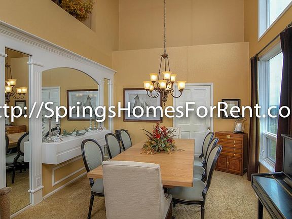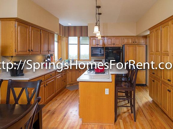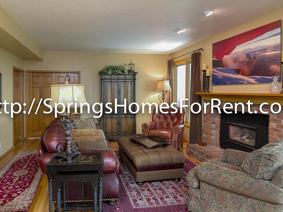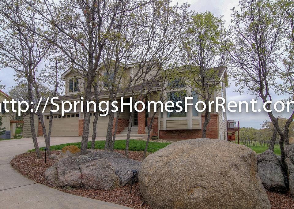 Beautiful home on Cheyenne Mountain. Spacious yard that backs up to park and walking trails, comes with wooden plays cape. Five bedrooms, 4 bathrooms with a formal living and dining rooms, and two family rooms. All wood floors on the main level, with sun room and spacious deck complete with outdoor speakers and fireplace. The finished walk out basement comes with a kitchenette, video game room with two tvs, and pool /shuffleboard table all to stay with the property. District 12 schools and Cheyenne Mtn Elementary. This property does not allow cats.
