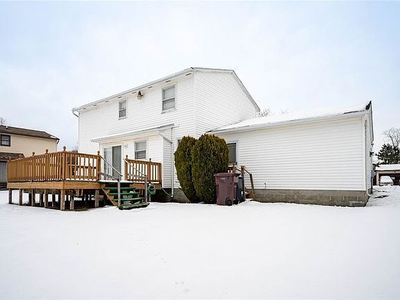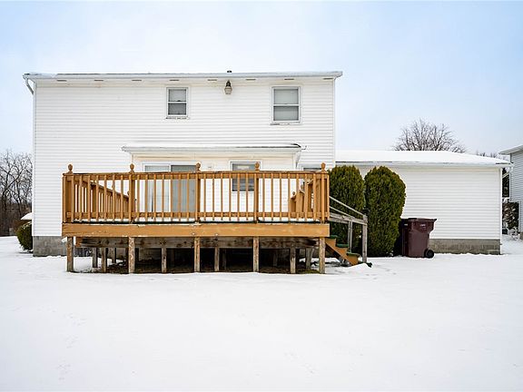 This 1440 square foot,3 bedrooms, 1.5 bathroom colonial is located in the Spencerport School District. The first floor features a living room,dining room and eat-in kitchen with direct access to the nice sized deck. Upstairs are 3 good-sized bedrooms and a full bathroom. There is a heated garage and full basement for extra storage.This house has a nice layout with just the right amount of space.So much potential to make this home the way you want it!