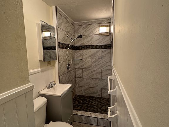 Freshly Painted, bright and sunny second floor unit with 3 bedrooms. Mini Splits provide heat and AC. Tiled Shower and new vanity in the bathroom. Private deck in the back and off street parking. Coin-op laundry in basement. Owner pays for water and trash. Tenant is responsible for electricity.