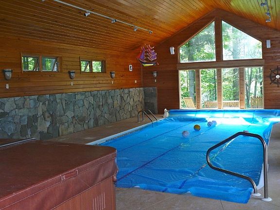 This remarkable contemporary is nestled in ten secluded acres and offers views of the Catskills and access to and views of a five acre pond. It also sports a high-quality indoor pool, a separate two-story garage/workshop/ studio and a two-bay attached garage which leads directly into the kitchen. Offering a handsomely redone kitchen, this special home with intimate and public spaces has four bedrooms master bdrm. suite on the first level, an office, four bathrooms, a huge entertainment center off the swimming pool room and a family room. Not only being in truly excellent superb condition, it is close to everything ... Chatham, TSP and the Berkshires. You have take a close look at it all and see for yourself. It's wonderful! (Listing 5866228 Confirmed 11/9/2012)
