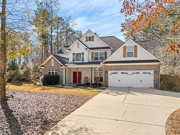 RARE OLIVER TRAILS HOME IN SMITHS STATION! Nestled in a tranquil setting, this 4-bedroom, 3-bath home offers both privacy and charm. Surrounded by trees, the beautifully manicured front yard welcomes you, while the backyard steals the show with a sparkling pool, expansive deck, and breathtaking sunsets—a perfect oasis for peaceful living. Inside, the spacious layout boasts tall ceilings, a formal dining room, and a cozy living room featuring a striking herringbone fireplace detail. The kitchen flows seamlessly into a light-filled breakfast room, ideal for casual mornings or entertaining. Upstairs, find two additional bedrooms AND two bonus spaces (perfect for a play room, office space or extra bedroom). One room has delightful bedroom with lofted bunk beds adds a playful and unique touch. With its serene surroundings and thoughtful design, this home offers the perfect balance of relaxation and functionality. Don’t miss your chance to make this one-of-a-kind property your own!