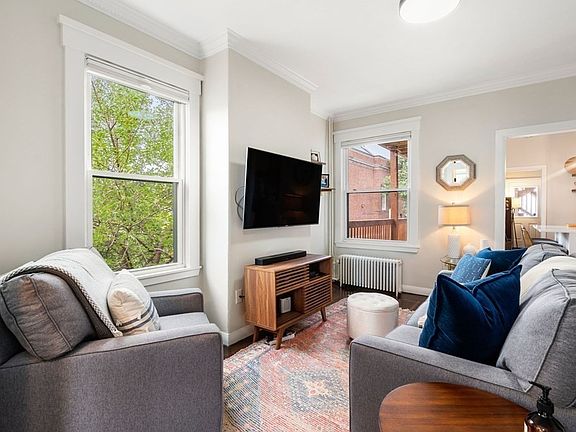 Enter into this beautifully renovated 2 bed/1 bath, brick row condo in East Boston's historical Eagle Hill neighborhood. This sleekly designed kitchen features white quartz countertops and backsplash accented by modern matte black hardware, stainless steal appliances and access to exterior deck. Classic touches such as refinished hardwood floors combined with marble shower floor, glass enclosure and bluetooth speaker bath fan. Updated (CA Closets) walk-in closet off master bedroom. Amenities such as in-unit washer & dryer and custom closets. Private deck that wraps around the building, additional common yard and private storage. Quick walk to the Maverick & Airport T Station and just steps to the bus line. A 5 minute walk to Liberty Plaza featuring a Shaw's grocery store, CVS, Kappy's Liquors and Beacon Hill Athletic Club.