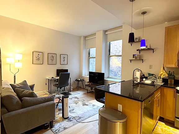 Gorgeous, modern studio in the heart of Downtown Boston! The apartment is situated in a professionally managed building with and elevator and a Butterfly security system. As you walk in, you are greeted with an open floor plan/layout with a large eat-in kitchen, accompanied by an open living room space. The unit gets great sunlight, is extremely quiet & overlooks the common patio/garden area for the residents. The bathroom is updated with a marble vanity top & large tub. Along with their being an in unit washer/dryer, the apartment also has great closet space & a deeded storage space in the basement, perfect for extra boxes, suitcases & sports equipment. The apartment is conveniently located near South Station, Seaport, Financial District, Chinatown, etc! There are tons of coffee shops, bars & restaurants in the area along with direct highway access to 93 N & S. Reach out to schedule a tour, it will go fast! No smoking water/sewer included