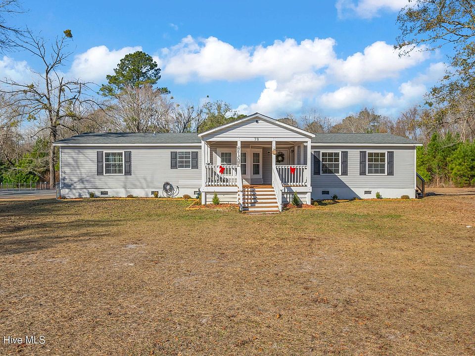 70 Little Pond Road is Affixed and offers nearly 5 acres of possibility with a versatile setup ideal for a variety of living or investment needs! (Document of the Declaration of Intent to Affix Manufactured Home is available.) Configured like a duplex, one side features 2 bedrooms, 2 bathrooms, a large living room, and eat-in kitchen. The other side includes a bedroom, full bath, kitchen, living room, and an additional flex room with closet—perfect for an office, media room, or guest space. Each unit has its own private entrance, making it well-suited for rental income, extended stays, or multi-generational living. Outside, you'll find a peaceful covered front porch, a wired workshop, and a small pond. The lot includes a cleared path to a rear pasture and a small creek, offering space for animals or potential farming. Deeded river access adds even more value, and there's potential to subdivide. Located just off I-40, this property offers both privacy and quick access to Wilmington, nearby beaches, and the Cape Fear River.