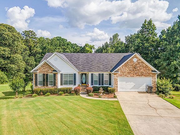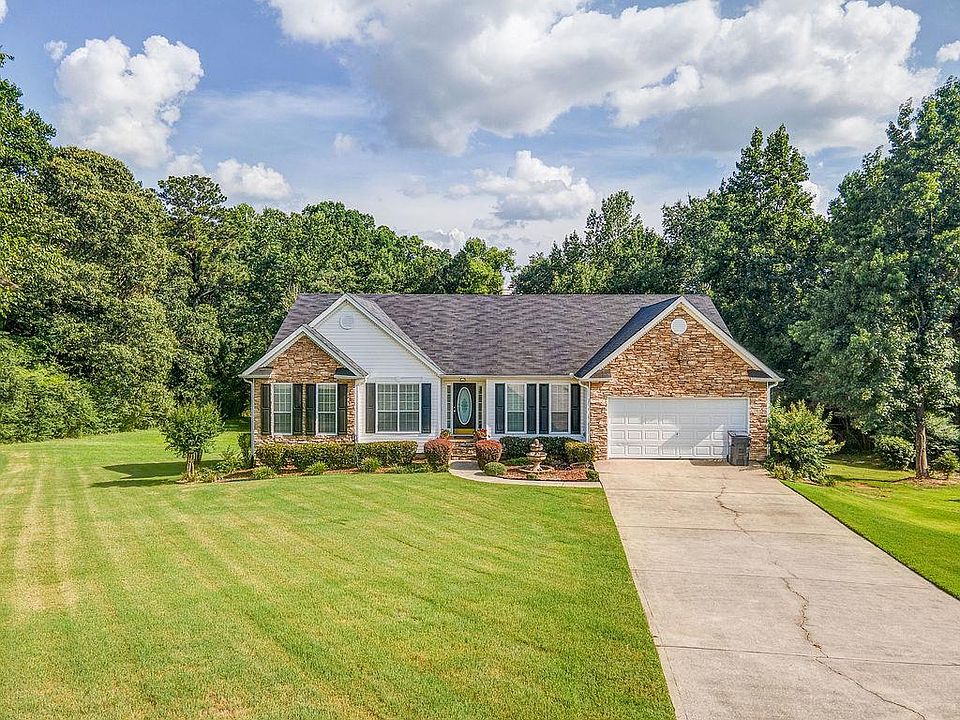 Come home to tranquility as this cul-de-sac dream home sits on 1.27 acres with a private pond. Beautiful and mature landscaping with a great back deck for entertaining, you will not find this deal anywhere else! Open your front door to the welcoming Formal Dinning Room and Study. Oversized Living Room with vaulted ceiling and gorgeous fireplace. This home has been perfectly maintained. The Kitchen has granite tops, hardwood floors, beautiful white cabinets, tile backsplash, pantry, breakfast bar, and breakfast area with lots of natural light. Gas stove and fridge that STAYS! Laundry Room/Mud Room with washer and dryer for the buyer. GIANT Owner's Suite with extra room for lounging chairs and a walk in closet. Master Bath holds separate shower and tub, double sink and makeup vanity. 2 spare bedrooms with a full bath. Rare ranch home on a full unfinished basement stubbed for a bath