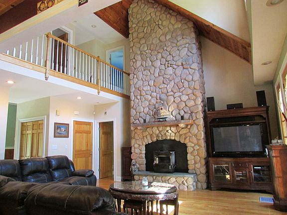 Extraordinary Custom Cedar Cape, situated on a 15 acre private park like compound on beautiful Burden Lake. 1st floor features master suite & spacious open floor plan w/ gourmet kitchen/ liv room combo w/ 22 ft. fieldstone FP. French doors to wraparound deck. Bonus room above large garage. Stunning living room features a 22 ft floor to ceiling fieldstone fireplace, impressive vaulted wood ceilings/beams adorned with natural light and French doors to wraparound deck overlooking custom in-ground heated pool . Oak hardwoods throughout first floor. All bedrooms boast generous size walk-in closets. Skylights & jetted tub. Private deck terrace above garage overlooking pool. Inclusive of separate 4 acre parcel, with potential to build a second home, if desired. Massive 2.5 car garage, with high ceilings, tons of storage space and built in work benches galore. Plenty of options to keep heating costs low. Pond, trails for walking/ ATV'S. The only property in the area that offers not only a gorgeous custom home, but acreage AND 43 ft. of lake frontage for a great price! Home freshly stained & looks gorgeous! A home that truly feels like a private vacation getaway. Too much to list. Convenient 2.5 hr. drive from Manhattan/Boston. Truly a one of a kind must see!