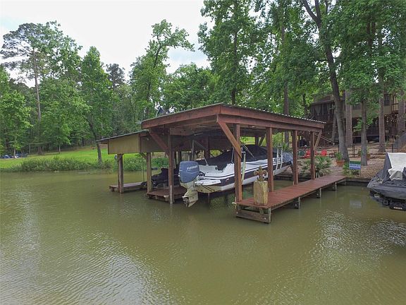 Waterfront HOME~RARE FIND! Priced to sell! Charming waterfront home-ALL Furniture & appliances stay-OPEN CONCEPT with HUGE family rm, freestanding woodburn FP. Lodge style home was totally remodeled to studs in 2011. Home has 4 bdrms, 2.5 baths. 2 porches #1 up, is 12'x17' screened with TV, off of kitchen #2 large covered opens at primary suite. Energy saving radiant barrier roof. 2 refrigerators New one in kitchen. New HVAC system on first level. Entertain outside~3 lake side staging areas, Picnic-Grill, Brick fire pit area at water & boat pier. Trees, Fenced area for dogs. Large boat house, 2 jet ski lifts. GREAT FISHING. Storage rm/workshop & BIG Golf cart-Storage bldg. QUIET! TREES! SERENE! PERFECT AIRBNB/VRBO -ALL FURNISHING-APPLIANCES STAY! Your home or investment. Subdv. has pool & a boat launch. Close to shopping/eating in Onalaska, TX. GREAT DEAL! Hurry~VIEW this home! Call for more information.