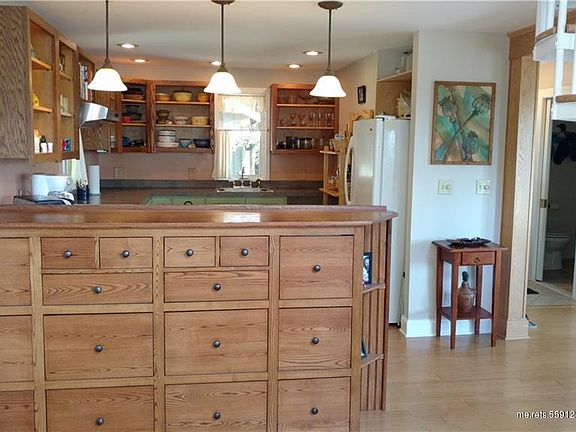 Unlimited views of Rangeley Lake, Doctor's Island and surrounding mountains! Westerly sunset views. Deeded common access to Rangeley Lake, with boat docks, and canoe/kayak storage. Full apt with separate entrance off the main house, and an art studio over the garage. 24X30 garage is currently being used as a workshop. Custom cabinets, master suite, custom matching screen doors, and multi level decks. If you prefer not to use the stairs, there is parking available on Tilt of the Kilt road, with direct access to the main house.