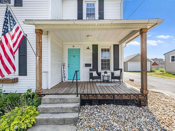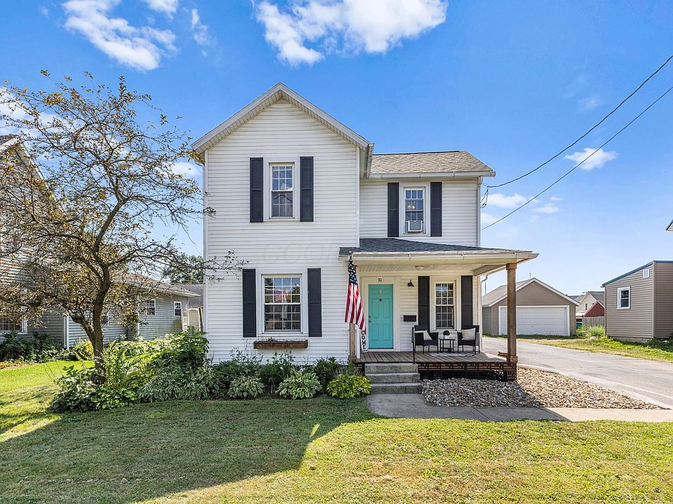 Charming 3 bedroom, 1.5 bath, 2 story move-in ready with modern updates and timeless appeal! This beautiful, inviting home features an open-concept kitchen seamlessly flowing into a spacious great room, perfect for entertaining. Multiple living spaces offer flexibility for family living or cozy gatherings. The nicely finished basement features a pool table, ideal for hosting game nights! Outside, enjoy a generously sized yard, a welcoming front porch, side patio with plenty of room to grill, and a detached two-car garage. Stay comfortable year-round with a brand-new furnace and central AC. Turn-key and ready for you to call home!