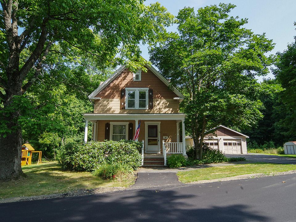 In town home with large back and side yard. (1.27ac) All kinds of room for gardening and enjoying the outdoors. This home has so much character, welcoming front porch, hardwood floors in living room, den and dining room. Large kitchen area, cold storage beyond kitchen, three large bedrooms on second floor with a full bath. Two heat pumps, one on each floor help keep the home comfortable in the summer. Paved driveway and detached two car garage. Great opportunity.