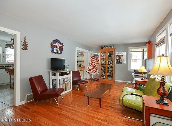Charming three-bedroom Cape Cod tucked away on quiet, minimal-traffic street. Lovingly maintained home sits on huge lot with fenced-in backyard, mature shade trees, sprawling deck, and red storage shed. Living room has gorgeous hardwood floor, neutral walls, and lots of natural lighting. Ever-popular white eat-in kitchen has ample cabinet/counter space, white appliances, wainscoted wall, and exits to a two-car garage and deck. First-floor master bedroom, and full bath completes the main level. Upstairs are two bedrooms, both with hardwood floors and good closet space. Easy five-minute drive to U.S. Route 20, Larkin St., downtown Elgin, Interstate 90, and Elgin Community College.
