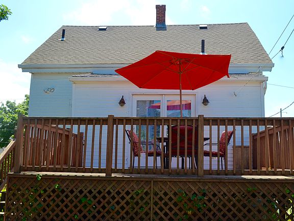 This cozy 2-3 bedroom, 1 bath cottage is located off Eastern Avenue with easy access to highways, restaurants, and shopping. The first floor features an updated bathroom and kitchen with plenty of cabinet space and stainless steel appliances, the living room has french doors that lead to a deck that allow distant water views to be enjoyed during winter months from the comfort of your living room, there is also a dinning room that can also be used as a first floor bedroom. Plus there is a second set of french doors that open up to the rear deck, which overlooks a private, fenced in yard with many mature trees providing shade and privacy. Upstairs you will find a sitting area and 2 more bedrooms. There is a full basement with plenty of room for storage with laundry that walks out to the yard.