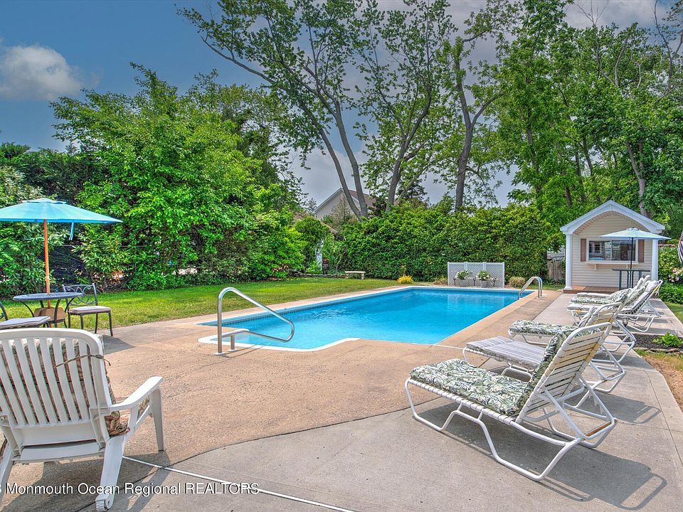 Make this 3 bedroom ranch on a premiere street in West Long Branch your very own! Back yard oasis with in ground pool, cabana , retractable awning and patio for your summer outdoor enjoyment. Well water for pool and yard/ public water for Inside. Easy ranch style living with living room, formal dining room, eat-in kitchen and 3 generous sized bedrooms. Attic has cedar closet and plenty of storage. Attached garage for added storage. This house has it all!!