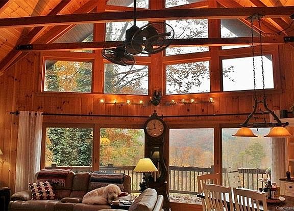 Cozy & comfortable! This cabin has everything you want or need in a mountain retreat! Beautiful mountain views, spacious enough to spread out, easy access & GREAT location! Main floor living has open family room w/wall of windows overlooking the mountains, spacious granite kitchen, large master & master bath! The new gas log fireplace w/walnut hearth gives you that cozy mountain feel! Off kitchen is a 1/2 bath & laundry. Upstairs are 2 large bedrooms, full bath and a "cat walk" to the ENORMOUS bonus room w/full bath. Bonus room would be ideal for a game room or as a separate rental w/its own private entrance! Also a screened porch, fenced side yard for Fido & large 2-car detached garage that has covered walkway to the home! While this has primarily been a full-time residence, it would be a great vacation rental! All new appliances, new HVAC, new gas log insert, new paint, new, never used, hot tub, new kitchen supplies! Turnkey & furnished with all new kitchen supplies! Master bed is brand new! Any antiques-rocker, bench, table, items in bonus room DO NOT convey.