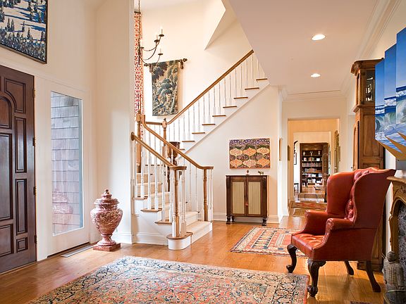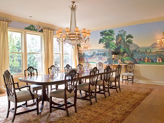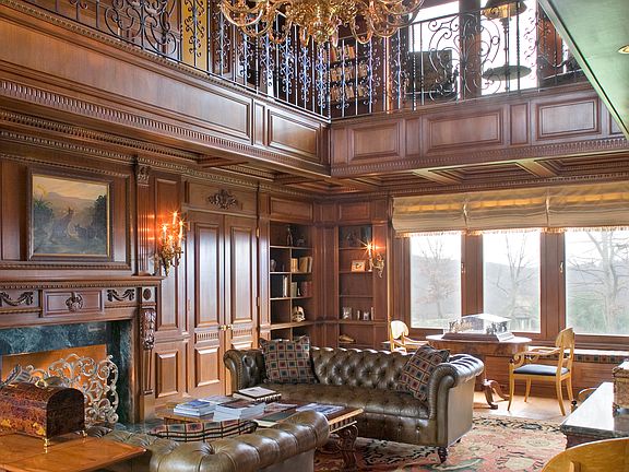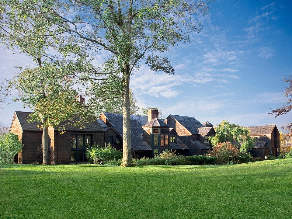 Designed in the tradition of the great shingle-style manors of Newport, this impressive five bedroom residence features three levels of splendidly detailed living space with regally-scaled formal rooms and relaxing spaces orchestrated for today's lifestyle. It features a double-height entry hall with a fireplace, a dazzling two-story library richly paneled in Honduran mahogany. A separate wing with a solarium, indoor pool, gym with steam shower and full sauna are ideal for large-scale entertaining. Elevator service, a two-bedroom guest apartment and several garages further complement this magnificent residence. The grounds are enhanced by a beautiful collection of specimen plantings, a ball-field size lawn, a Har-Tru tennis court with pavilion, and a large free-form pool. A recently completed deck provides an additional spot to enjoy the striking scenery that never ceases to delight at this supremely peaceful and private 12.2 acre setting.
