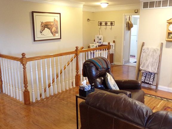 Country Living - Brick Ranch Home - Mostly hardwood flooring throughout, crown molding. Work from your home office w/custom made bookcase, 3 bedrooms, 2 full baths (primary bath has double vanity, stand-up shower & jetted tub). Nice open kitchen & family/living area blended together. 1st level laundry, full unfinished walkout basement to add additional living space, large back deck plus rock patio with fire pit.