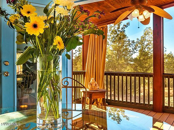 Live the country dream in this charming cottage on a spacious estate sized 1.19 acres located only minutes from W Sedona. Inviting and private, it is a gardener's delight with seasonal gardens, perennial flowers and a 8' x 8' greenhouse. Lots of room for your pets and toys, this 1680 SF home with 3 bed / 2 bath offers a fully fenced yard. This 2009 well-built Cavco manufactured home features luxurious hard wood floors, a wood burning fireplace, a large screened porch with Red Rock Views, a large detached garage / workshop. NO HOA - STR permitted. Horse property - buyer to verify.