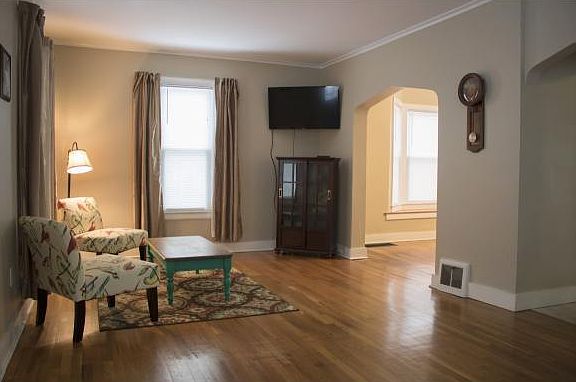GORGEOUS kitchen updated 2013,solid surface counters, cherry cabinets,new floor+ all new appliances. Owners opened wall for spacious MBR w lots of closets and porch. Beautiful updated baths, new windows, updated electrical, furnace and hot H2O. Gleaming refinished h/w floors, solid wood doors, interior freshly painted, unfinished walk up attic. 1 car garage, covered front porch + flat yard