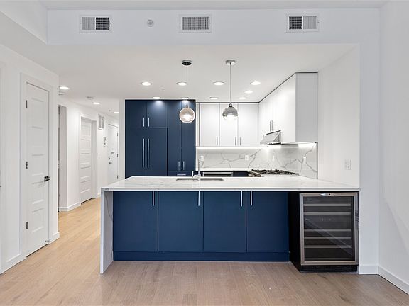 Located in Hoboken's booming south western edge, Voss at 70 Monroe, built of steel and concrete, is a state-of-the-art condominium building offering four 3 bedroom / 2 bath home with 450sf bonus room and 750sf PRIVATE YARD! Seamlessly integrated into the living areas, the Chef designed kitchen features a Bertazzoni Master Series Range accompanied by Paneled Bosch, Kitchen Aid, Marvel, and Fisher and Paykel appliances. A direct vent exhaust hood, Quartz waterfall countertops and custom United Cabinet Works cabinetry complete the sleek and modern design of this showplace kitchen. The luxe baths feature radiant heat flooring, Ann Sacks tile, Kohler fixtures, custom United Cabinet Works vanities and quartz counter tops. Guest baths are complete with a deep soaking tub whilst the Master on suite bath feature a steam shower. Other features include an integrated intercom and security system, water filtration system, in-home washer/ dryer and wide plank solid oak wood flooring. Slated to received LEED Gold certification, these newly constructed homes are sure to please the most discerning buyer. Rental parking available at SkyClub
