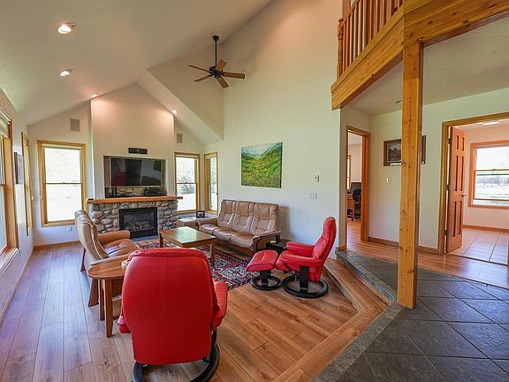 Welcome to your dream home! This beautiful, high-quality residence is perfectly situated on a nicely landscaped 2.16-acre lot, boasting frontage on the serene West Branch of the Gunnison River. The custom floor plan features timeless Cherry cabinetry in the kitchen, elegant Cortec engineered flooring throughout the main floor, and stunning Fir raised panel doors. The gas rock fireplace adds warmth to the sunken living room, creating a cozy ambiance. This home offers ample space with four spacious bedrooms and three baths. The luxurious primary bath includes a huge custom-designed closet, perfect for all your storage needs. Newly carpeted upstairs, you'll enjoy the fresh and modern feel throughout the home. For entertainment and relaxation, the game or family room provides the ideal setting for gatherings and leisure activities. The three-car attached garage comes with a sizable exterior concrete apron, offering additional parking space for guests. Maintaining the lush lawn is effortless with the underground sprinkling system, and the additional shed provides extra storage. This property is a wonderful, quiet place to call home, and it’s just minutes away from downtown Gunnison. Experience the perfect blend of tranquility and convenience in this exquisite home.