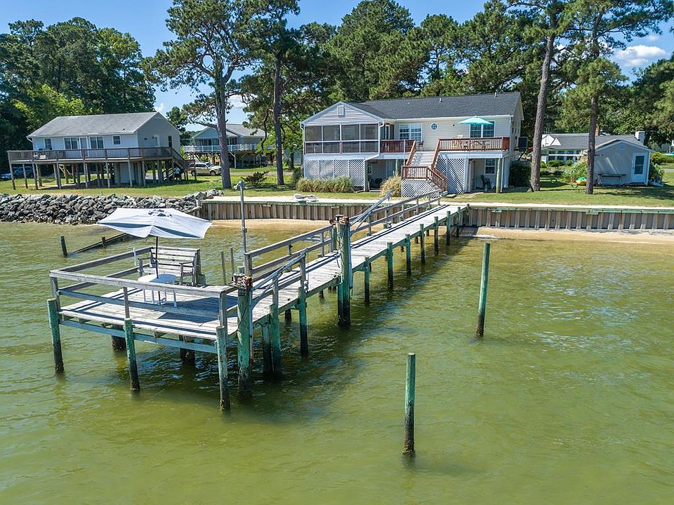 Spacious and well-maintained Rappahannock River beach home offers magically expansive views. Beachfront living with main floor featuring 3 bedrooms, 2 baths, open concept living room, dining room and updated kitchen, wonderful waterfront screened porch and deck. Lower-level features 2 large family gathering areas, full bedroom and bath. There is a one car attached garage. Tons of covered storage for all and any water toys, outside shower and great storage shed/mancave. Brand new vinyl bulkheading, great pier, and sweet sand beach. Home has had numerous upgrades over the last 5 years to include new roof, new heat pump and new hot water tank. Home has maintenance free vinyl siding. CoreLogic flood determination on file, home sits in zone X.