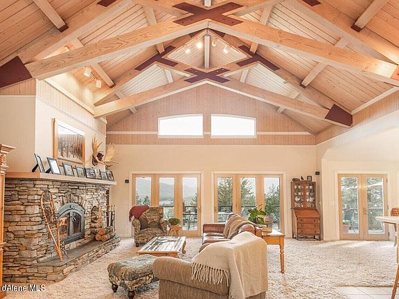 70 N. Falcon Dr, is privately and conveniently located near the shores of Lake Pend Oreille, Schweitzer Mountain Ski Resort, and one of the West's Best Small Towns... Sandpoint Idaho! You'll enjoy the serenity as you travel from Hwy 95 on paved and tree-lined roads, primarily county maintained on a school bus route. This Custom Designed Contemporary Mountain Style 3800 sq ft home (total structured area 5471' including carport) boasts a generous, well appointed Master Suite on the main level, 3 private bedrooms, 3 and a half bathrooms and an Imported Finnish Sauna. The parked 4+ acres features a Fire circle and a detached 2+ car garage and carport - ample parking. The visual emphasis of the home is the massive stone fireplace wall, and a lofted beamed ceiling. TRULY EXCEPTIONAL VIEWS!