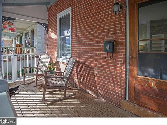 Open Sunday 8 5 from 1-3 STUNNING END UNIT! Gorgeous 2 bedroom, 1 bath HISTORIC brick row home in the center of Doylestown Boro! 1 Block from everything!!! High End Updates include Kitchen with gorgeous cabinets, Quartz Counter Tops, ceramic tile floor and high end Bosch appliances! New finished on site Hickory Floors in Formal Dining Room and Living room!Charm Charm Charm! Lots of natural Light! Master Bedroom with large closet! 2nd bedroom and large bathroom with tub shower, vanity with Quartz counter top complete the second level. This home backs to and over looks the Wood Street Park!!! Full basement! 2 Car off Street Parking. Fenced in yard! Sweet front porch! Walk to Everything, Museums, restaurants, County Theater, farmers market.... NO ASSOC. Fees! LOW TAXES! Such a wonderful place!