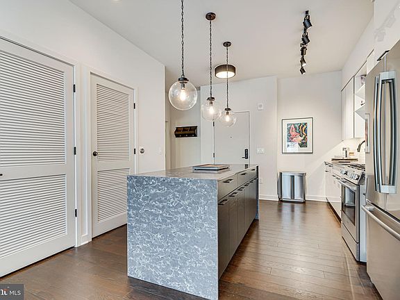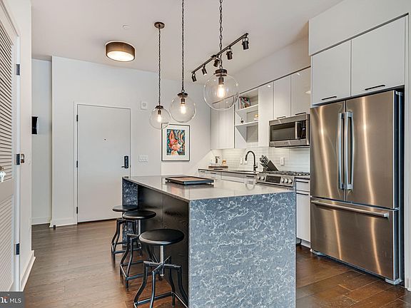 Open House Saturday 12-2pm, a representative will meet you in the Lobby! Welcome to this highly desirable 2-bedroom, 2-bath condominium unit with parking, featuring a rare 2.625% VA assumable Loan, available to both military and non-military qualified buyers. An estimated $1,700 per month savings. This modern unit offers a spacious and well-designed floorplan with floor-to-ceiling thermal paned windows, ensuring excellent insulation. With lofty 10.5’ ceilings, the ambiance resembles that of a townhome. The kitchen is a chef’s delight, showcasing beautiful dark Quartzite countertops, a waterfall countertop island, elegant two-tone cabinets, and soft-close drawers/doors. Hardwood floors and tile throughout add to the upscale appeal. A full-sized washer and dryer conveniently stacked in the unit make laundry a breeze. Both bedrooms feature walk-in closets and ensuite baths boasting modern fixtures and linen closets. The primary ensuite bath exudes luxury with its dual vanity and large walk in shower Nestled in a friendly and peaceful condominium community, this building comes alive on game days! Enjoy fantastic amenities including an 11th-floor lounge to watch Nationals games, a rooftop terrace with fireplaces, grill stations, and multiple televisions. Cool off in the Kelvin’s rooftop pool (optional $250 annual fee for pool membership) or take advantage of private offices, a lounge area, and a conference room on floor 1.5. Stay active in the fitness center or find tranquility in the Zen Garden on the 2nd floor, just steps from your unit. Included with the unit is one underground secure parking space (located at the end of a row) and one storage locker. Benefit from the 18-hour on-site concierge and package receiving services, as well as additional bike storage for residents. Perfectly situated between the Wharf and Capitol Hill, and a 3 minute walk to the metro station, this property offers unparalleled convenience. It's a 1-minute walk to Nationals Stadium and a 11-minute walk to Audi Field. Immerse yourself in a vibrant lifestyle with abundant restaurants, entertainment, grocery stores, and waterfront parks and trails. Don’t miss the opportunity to make this your new home. Offers are due by noon on Monday. The seller reserves the right to accept an offer at any time, so prompt submission is encouraged.