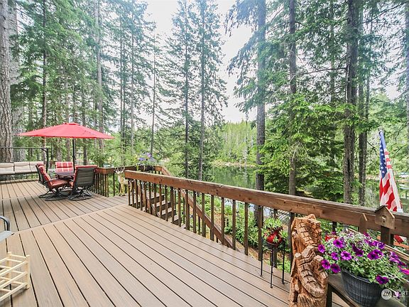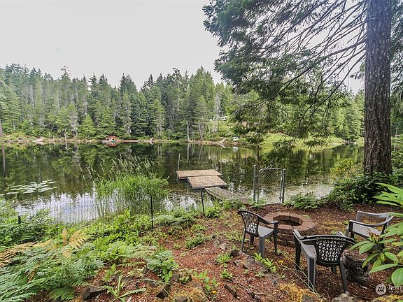 Tranquil Waterfront Escape! Life is better when you live on a lake! 1080 sq ft Lakefront home, large 816 sq ft detached garage 3 bd, 2.25 bath total with 1 of the bedrooms, 1/2 bath and Art room in the outbuilding. This home Has open concept living and kitchen area, 440 sq ft and its very own dock. Wired with new Generator. Newer paint, siding, appliances, metal roofing, Trex decking, New entry, furnace, heat pump, water heater, Leaf Guard gutters and more. 15 min to Belfair and 35 min to Bremerton and Seattle ferries. 60 feet of waterfront trout stocked Collins lake with a community park, Located minutes from Tahuya State forest, hunting, fishing, Horse camp and ATV camp & trails, Hood canal saltwater access. Live your dream. Welcome home!