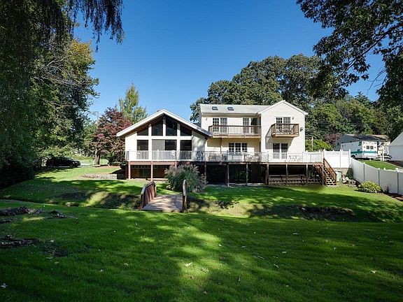 Welcome to your dream home! This stunning 4 BR & 3 bath Colonial offers serene views of the lush yard & boasts a spacious outdoor deck, perfect for relaxation and gatherings. This warm & inviting home boasts a dining room with a fireplace adjacent to the eat-in kitchen w/ large granite island, plenty of storage, and French doors leading to the private backyard. Family room w/ custom built-ins seamlessly flows into a breathtaking wood-beamed vaulted space complete w/ coal-burning stove that adds both warmth & character. The game room overlooks the grandeur of the great room. Bedroom and full bath complete this floor. 2nd floor provides a well thought out layout offering 3 bedrooms, including a primary suite w/ fireplace and sliders to the balcony. The convenience of a family bathroom and laundry room on this level ensures comfort and practicality for everyday living. Don’t miss the opportunity to make this picturesque retreat your own!