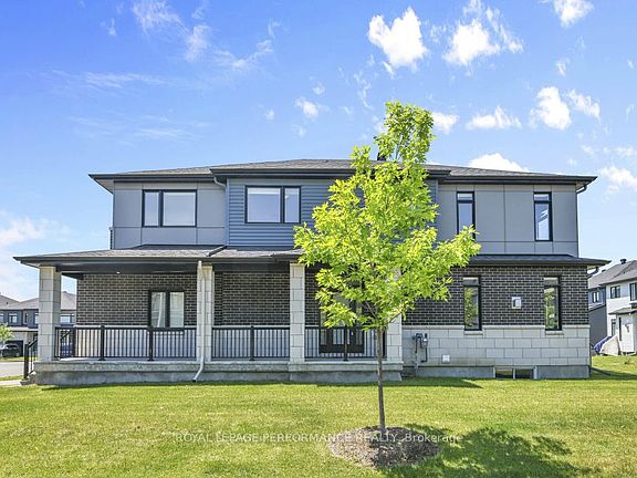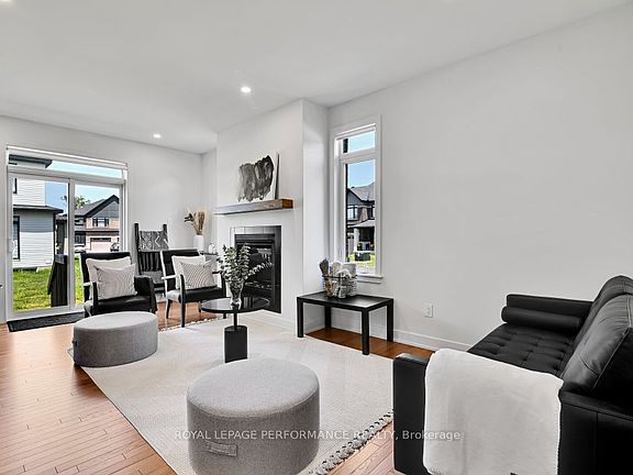 Stunning End-Unit Townhome in Family-Friendly Findlay Creek! This beautifully upgraded corner unit offers over 2,200 sq. ft. of stylish, functional living space. With an open-concept layout and large windows throughout, the home is flooded with natural light. Gleaming hardwood floors span the main and second levels, including the elegant staircase adding warmth and sophistication throughout.The main floor features a beautiful kitchen with high end appliances, gas fireplace and a powder room. Upstairs, youll find four spacious bedrooms, including a private ensuite bathroom.The fully finished basement offers a cozy carpeted rec room, ideal for family movie nights or a playroom. Enjoy the convenience of a double car garage and a fantastic location near parks and green space.This home is filled with high-end finishes and over $50K in upgrades. A rare opportunity in a sought-after neighborhood, book your showing today!