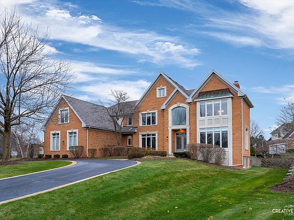 Discover an exquisite and spacious two-story residence nestled in the prestigious Sanctuary of Inverness community. This highly coveted home boasts numerous recent updates and upgrades, including a DaVinci roof, two furnaces, hot water heater, well pump, new appliances, many windows, new carpet and paint throughout. Step into the newly renovated kitchen, where white cabinets adorned with elegant crown moldings complement a stylish subway tile backsplash. The expansive center island features granite countertops and an additional kitchen sink, and new WOLF stovetop, making it the perfect space for meal preparation and hosting large family gatherings or festive holiday celebrations. The sun-soaked sunroom, complete with tray ceilings and crown moldings, invites you to enjoy a morning book or a cup of tea or coffee. The grand great room welcomes you with soaring ceilings, a stunning two-story brick fireplace, and breathtaking views of the meticulously landscaped backyard, complete with a custom paver brick patio. A spacious library showcases custom built-ins and crown moldings, conveniently located next to the elegant dining room featuring tray ceilings, chair rail, and bespoke finishes. Ascend one of the two staircases to the upper level, offering four generously sized bedrooms, all with walk-in closets. The luxurious primary suite is a true retreat, boasting tray ceilings, crown moldings, and a private ensuite equipped with a Jacuzzi tub, separate shower, dual sinks, and a dedicated vanity area. The second bedroom enjoys its own private bathroom, while the third and fourth bedrooms share a spacious pass-through full bath. Venture down to the fully finished walk-out basement, where a warm stone fireplace creates a cozy family room ambiance, alongside a game area ideal for a pool table, a full bathroom, and a private workout room for your fitness needs. The property features a circular driveway leading to a four-car attached garage, showcasing quality construction and an unbeatable location close to I-90, the train station, shopping, and award-winning Barrington schools!