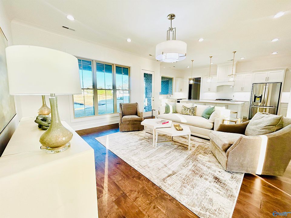 Beautiful new construction with a water view! Amazingly well-designed floor plan will steal your heart! 8' tall double doors open to a sweeping view of the interior and the lake beyond. Formal dining room opens to the Greatroom and kitchen. Massive island with quartz countertop anchors the white kitchen. New stainless appliances. Large covered porch for entertaining. Split bedroom plan offers privacy for the Owner's Suite which has a luxury bath featuring a tiled shower and freestanding tub. Upscale plan includes access from the closet to the laundry room! Drop zone off the garage to keep everyone organized. Bedrooms 2 & 3 share a large bath with double vanities.