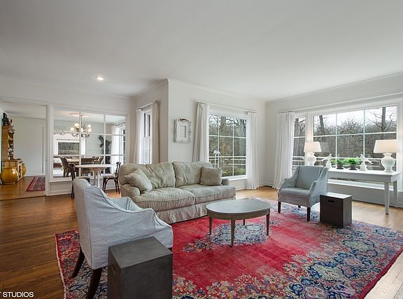 Custom ranch home designed by Jerome Cerney sits on 5 private wooded acres on a closed street bordered by Flynn Creek and very close to town and the Metra station. This charming home has excellent curb appeal with a circular driveway and a brick porch. The home features dutch custom doors, glistening hardwood floors, and plaster walls. The foyer opens to the living room which has 10 ft ceiling, a gorgeous fireplace and custom built-ins. The large picture windows bring the outside in offering amazing views. The sitting room and dining also feature large windows to enjoy the outdoors. The family room has vaulted ceilings and wall to ceiling windows and a slider leading to back yard. The kitchen boosts commercial grade appliances, granite counter tops and is very functional for any chef. The lower level features cypress wood paneling and another fireplace and additional storage. The garage also has cypress wood paneling, unique pane glass garage doors and also offers plenty of storage.