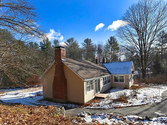 Nestled in the heart of Hopkinton Village in a quiet country setting you will find this charming two bedroom Ranch style home set back from the road. The living room features a stunning wood burning fireplace, and radiant floor heat. The sunny eat-in kitchen with slate floor and soapstone counters is fully applianced and boasts plenty of storage. In addition there is a large dining room with wood stove, two bedrooms and two full baths. This home is on town water, has new replacement windows, a detached garage/barn and plenty of front and back yard for gardening or just relaxing.