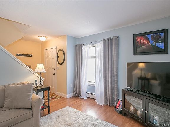 Lovely and spacious quad level townhouse located in the popular Ryefield II complex. This end unit features 2 large bedrooms, 1.5 bathrooms and updates galore. Step inside the front door to the living room with hardwood floors which is located on its own floor. Head up a few stairs to the next floor which features the open concept dining room with hardwood floors and updated kitchen with its neutral white cabinets, laminate counters, tile floors and breakfast bar. A large slider really lets a ton of natural sunlight in and leads to a private deck. An updated half bath finishes this level. Head up to the next level to one of the spacious bedrooms, which is currently being used as an office. The top floor features the large Master Suite with full updated bath. The basement offers additional storage, laundry and new hot water heater (2017). Located close to highways, schools, shopping and so much more. Don't miss your opportunity to own this one today!