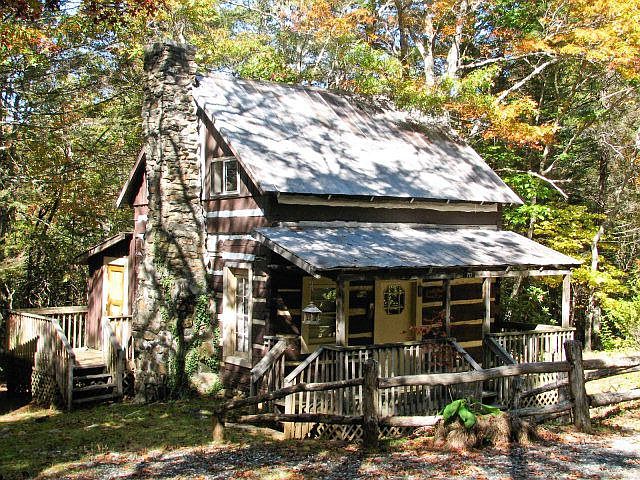 Old Chestnut Log Cabin in the Woods, very private, stone flue and fireplace, oak hardwood floor on main level, bright and cheerful living room, wooded level lot with excellent views of the Black Mountain range through the trees. Functioning cabin ready to move in, would make great vacation rental, or just quiet getaway. Covered rocking chair porch, gas range, dual bowl stainless sink, modern bathroom, tub with shower surround. Room for expansion. Desirable Celo/White Oak area. Cabin probably 120+ years old built of huge squared chestnut logs. Good gravel lane with plenty of parking.