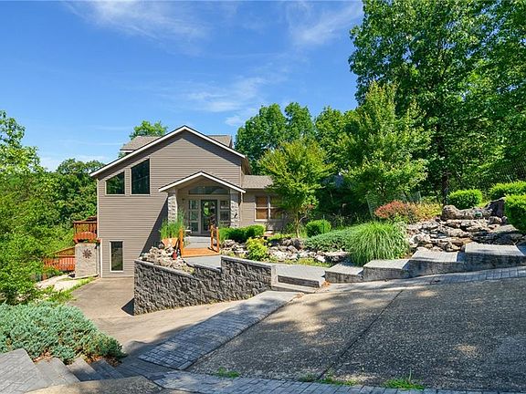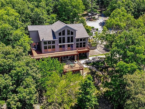 This unique lakefront property sits majestically on the cliffs overlooking Beaver Lake with beautiful views and has a treehouse feel to it! There's a guest house that would make an awesome income potential or in-law suite, and there is a boat slip available. The views from the main level deck are breath-taking. There is a trail down to the water with beautiful cliffs. From the huge 2-story living room, you can see for miles out the many windows. On cool winter nights, there's 3 wood fireplaces/stoves. The huge master has a study or sitting room ensuite. Cozy up to the wood stove or go out on the side deck and enjoy the nature. The master suite bath has lots of storage and there's a nice whirlpool tub and separate shower. The upper level of the home features an amazing loft bedroom with sweeping views and a fantastic ensuite bathroom that has another whirpool and shower with large twin closets. Downstairs, there's another huge living area with a walkout lower deck and two large bedrooms. Laundry is on lower level.