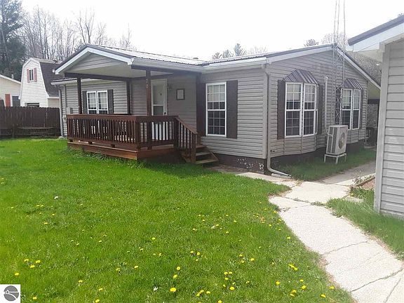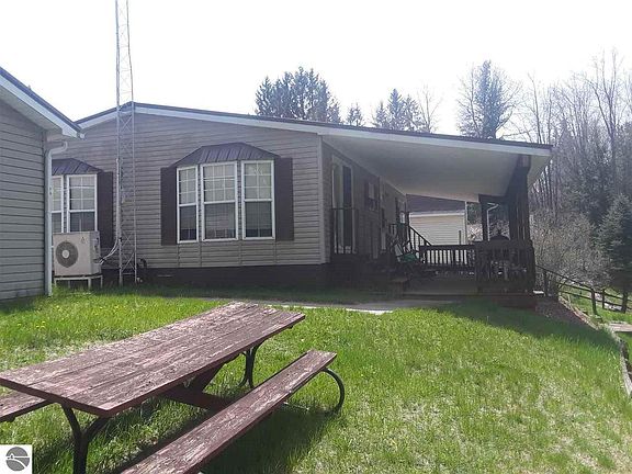 Cute 2 bedroom, 1.5 bath manufactured home with frontage and nice view along Latter Creek. This home features a metal roof, covered 12'x8' front porch, covered 10'x40' back deck, Mitsubishi a/c unit, plenty of cabinets in the kitchen with bar seating, a doorwall in the dining area leading to the back deck that overlooks the creek and central air. There are storage options with a 20'x24' detached garage with concrete floors that and there is an additional 8'x10' shed. Located just off M-55 and nearby M-65, the Tawas and West Branch. Garage furnace is not included with sale