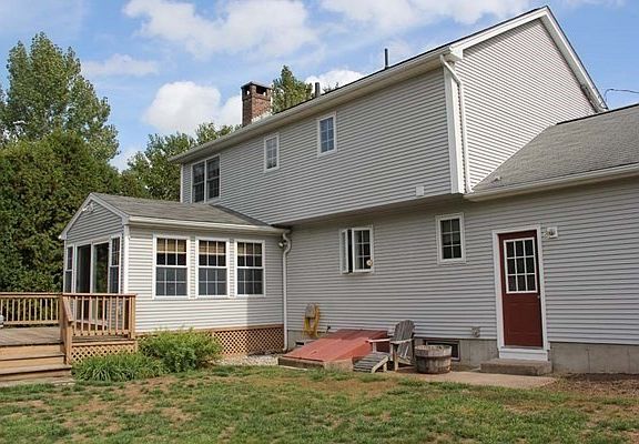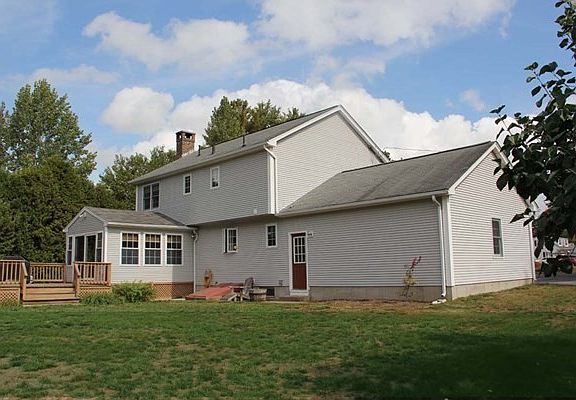 HIGHEST & BEST BY SATURDAY 10/3 at NOON! Move right into this extremely well maintained vinyl sided Colonial with nice flat backyard. Tile entryway. Front to back living room with hardwood floors and fireplace with wood insert. Gorgeous sunroom with wood floors leads out to a deck and above ground pool. Nice size kitchen with breakfast bar and all appliances remaining. Separate dining room with hardwood floors. Half bath on first level. Second floor has a large master bedroom with double closets and a full bathroom. Two additional good size bedrooms with another full bath complete the second level. Partially finished basement and work area. Two car attached garage with storage above and door out to backyard. Newer furnace, hot water tank, electric panel and generator transfer switch for future generator. Central air, central vac and shed. Don't miss this one!!!