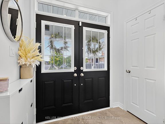 Double-door entranceSleek porcelain tilesOpen-concept main floorVinyl flooringHandy powder roomBreakfast barAmple workspace