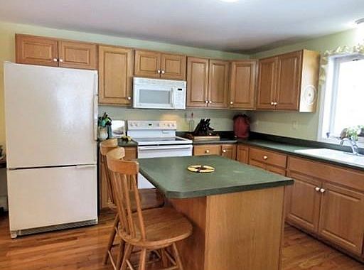 Well maintained Colonial featuring 7 rooms, 3 bedrooms, 2.5 baths, 2 car garage 2450 sq. ft . situated on large 1.69 acre lot beautifully landscaped. Large eat-in kitchen with island, formal dining room, fireplaced living room, 4 season room and 1/2 bath and laundry complete the first floor. 3 generous bedrooms on second floor , full bath , master bedroom has walk in closet and full bath. Walk up attic, gleaming hardwood floors, central air, irrigation, farmers porch, wood stove in lower level, 2 zone heat.