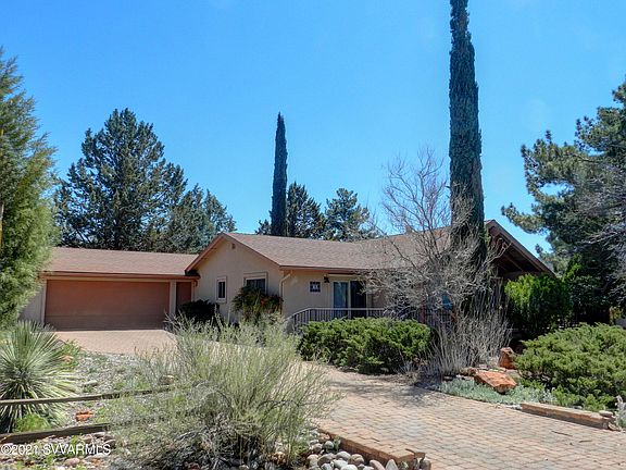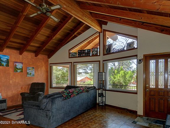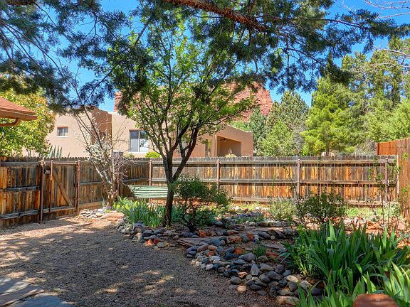 Wonderful home in a great VOC neighborhood! Lovely red rock views from front deck, great room and fully fenced backyard. Split floor plan, 3 bed+den home features vaulted wood beam ceiling in great room w/huge stone f/p. Bright kitchen w/cream colored cabinets, pendant lights, tile counters. Small laundry room w/cabinets off kitchen. Large 2-car garage w/storage cabinets/shelves/workbench; paver driveway. Master has FR doors to patio, add'l patio off SGD at den. Peaceful and spacious backyard w/fountain, planting beds and large storage shed. W-I closets in all bedrooms, plus storage closet in hallway. Some windows and sliders have been replaced. Sun shades on front windows. Close to hiking trails, shopping, galleries and restaurants. Just add some personal touches to make it your own!!