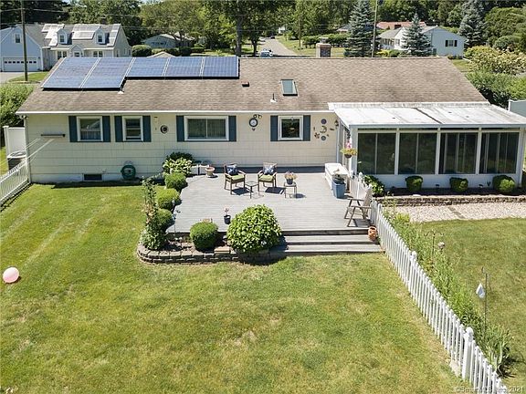Well cared for "L" shaped Ranch home set on a meticulous .40-acre lot with lovely perennial gardens. This Ranch offers 3 bedrooms, 2 full bathrooms, living Room with gas fireplace, dining room, updated eat in kitchen with Corian counters, hardwood throughout, huge sunroom overlooking back yard, large deck. City water and sewer, natural gas, solar panels. This home has many updated mechanicals and is ready for you today. Central Air 2010, Gas Boiler 2010, Rinnai hot water heater 2015, Driveway 2011 Solar installed 2015 $65.55 per month, Roof 2006-Garage Replaced in 2018. Painted with Rhino Shield in 2011, replacement windows. Walk to linear trail and West Main street business district. Great location.