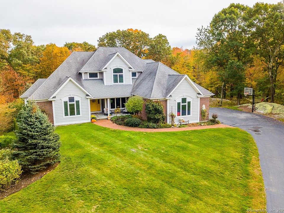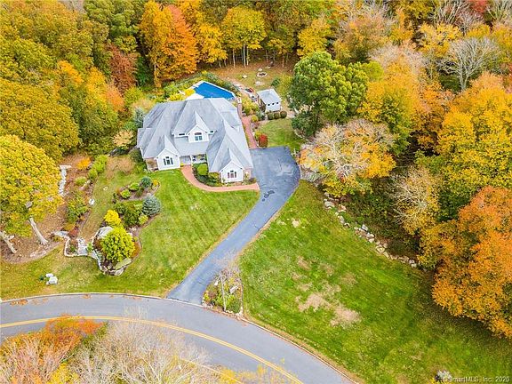 Great location situated on a quiet cul-de-sac in the corner of town. Expansive Colonial that can complete your every need, work from home, relax by your pool or fire pit amongst beautiful gardens or entertain in an English style pub. This home boasts 4 bedrooms, 3.5 baths, kitchen and great room with wood burning fire place, oversized island and hardwood floors. Vaulted ceiling living room, dining room guide you towards your home office, and first floor master suite, complete with walk in closet, bath with separate jetted soaking tub and walk in shower. The gracious staircase leads to three bedrooms, full bath and large sitting/play area. Ample storage is easily accessible from the sitting room. The entrance from the heated 3 car garage into the kitchen includes a large pantry, walk in coat closet and laundry room with a sink. The basement holds your private get away, full bath, wet bar, enormous space to make it your own weekend destination. The walk out basement takes you to your very private pool, beautiful landscape, fire pit area with stone walls under a flowering pergola. The home is equipped with generator hook up, central air and air purification system that transfers the air throughout the home 7x per day. Perfectly sited on 2.5 acres with professionally landscaped front, walking trail and garden.