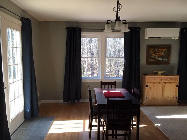 Private country apartment suite, dedicated Wi-Fi, 1and 1/2 miles from the center of Woodstock, enjoy a pleasant balcony, overlook field, woods, stream, orchard with private entrance and free easy off street parking a few feet from the front door. Rent includes heat and electricity, laundry room only for you, smart TV, excellent Wi-Fi, good for workcation, we prefer no pets, but possibility of some leeway about this with rental adjustment, snow plowing of road included in rental fee, this apartment is one flight up on the second floor of a garage, no no one lives beneath you; the apartment is attached to our home with its own private entrance. and extraordinary sound barrier separation.