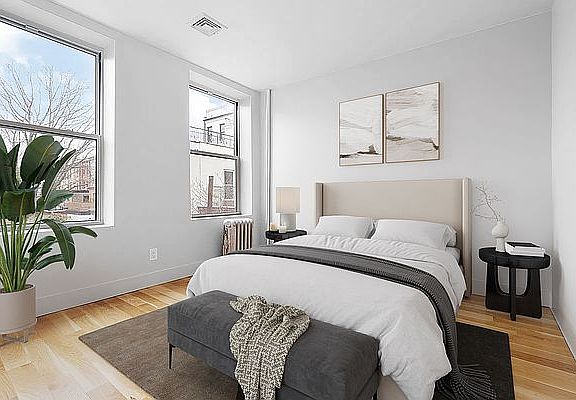 *Recently renovated 3-Bedroom, 2-Bathroom Home on Prospect Park West with Central AC and In-Home Washer/Dryer* Situated on the second floor of a six-story elevator building at the corner of Prospect Park West and 3rd Street, this beautifully renovated 3-bedroom apartment offers a comfortable and modern living experience. Boasting a central location and all the amenities needed for modern living, this residence provides the perfect blend of style and functionality. As you enter through the entry foyer, which features a spacious coat closet, you'll step into a central living room that seamlessly connects to a spacious open concept kitchen, allowing for versatile living and dining areas. The renovated kitchen features stylish shaker cabinets, complemented by a tasteful subway tile backsplash. It is equipped with a breakfast bar, full-sized stainless steel appliances including a dishwasher and microwave, and ample counter and cabinet space. The primary bedroom offers a generous amount of space and showcases picturesque western views overlooking the charming townhouse gardens of Park Slope. An en-suite windowed bathroom accompanies the primary bedroom, tastefully renovated with a walnut vanity and modern subway tile. The second and third bedrooms are private and spacious, offering flexibility to be used as additional bedrooms, home offices, or adaptable spaces. The second bathroom is conveniently located off the entry hall and is adjacent to the in-home washer/dryer. 70 Prospect Park West is a pre-war elevator building known for its spacious apartments and excellent access to Prospect Park. Nearby subway stations include 7th Avenue (with entrances on 8th Avenue) for the F train, as well as Grand Army Plaza for the 2 and 3 trains. Please note that some photos have been virtually staged.
